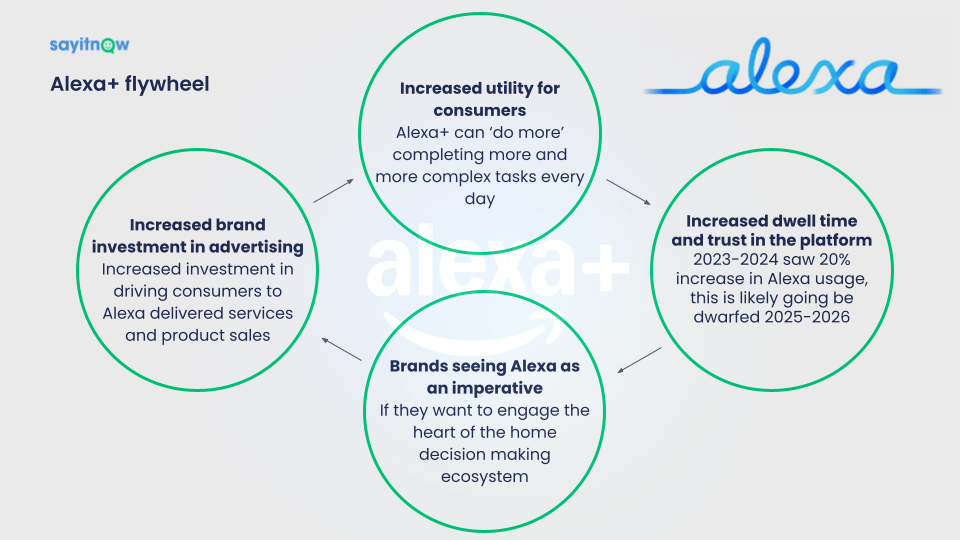Amazon claims meaningful behaviour lift in early usage (more conversations, more purchases, more recipe requests). Even if you treat those as directional, the core point is: Alexa+ is being instrumented as a modern assistant, which tends to mean better event data and journey visibility.